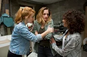 Unter DruckJessica Lemke (Karoline Teska, M.) hat endlich verstanden, dass ihr Freund Steffen sie als Drogenkurierin ausnutzt. Nina Sieveking (Wanda Perdelwitz, l.) und Harry (Maria Ketikidou, r.) wollen sie mit einem Mikrophon verdrahten, um Beweise gegen Steffen zu sammeln.Bild: © ARD/Thorsten Jander