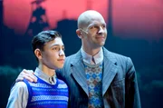 Wunder und WünscheDie Schauspieler Riccardo Campione (l.) und Detlef Leistenschneider (r.) standen im wahren Leben ab November 2014 für das Musical "Das Wunder von Bern" auf der Bühne. Auch in der Folge 393 des Großstadtreviers spielen die beiden wieder die Rollen des fußballverrückten Jungen Matthias Lubanski und dessen strengen Vaters Richard Lubanski, hier bei den letzten Proben für das Musical "Das Wunder von Bern".Bild: © ARD/Thorsten Jander