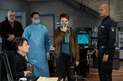 Auf eigene FaustNach dem Überfall auf den Kiosk von Peter Heinsen befragen Paul Dänning (Jens Münchow, 3.v.r.) und Piet Wellbrook (Peter Fieseler, 2.v.r.) die Jungend-Gang Lions (v.l.n.r.) Ahmed Allusch (Mohamed Issa), Anführer Walid Abou-Fadi (Walid Al-Atiyat), Vanessa Schmitz (Pauline Renvier) und (Timo Pöhlers (Maximilian Werner).Bild: © ARD/Thorsten Jander