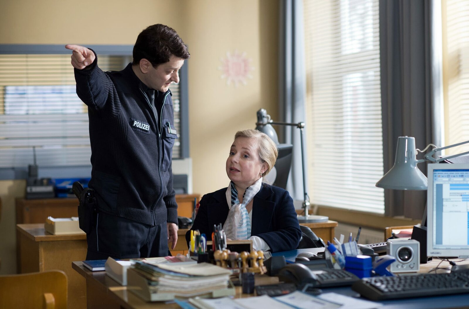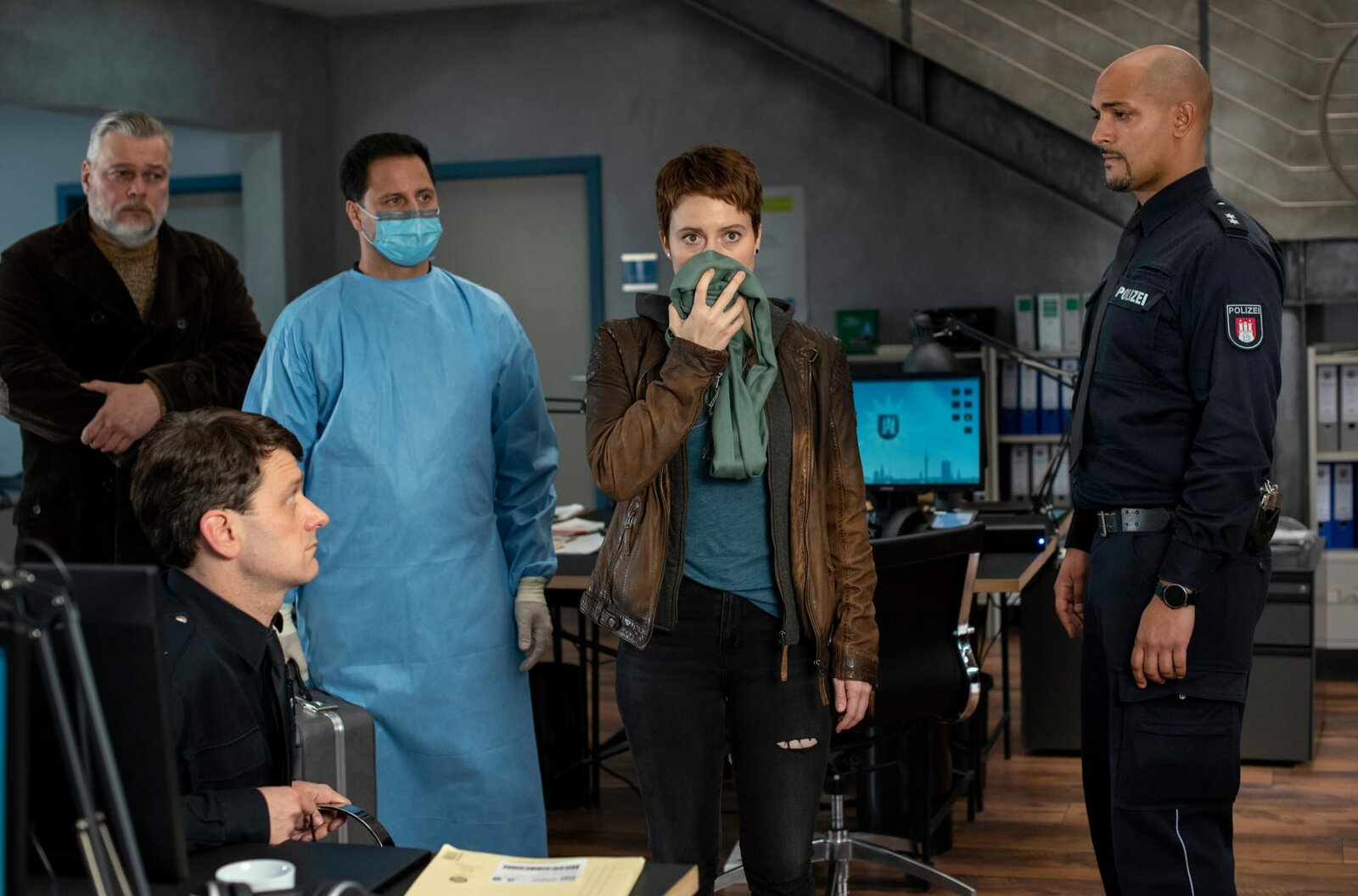 Der kurze Traum vom langen GlückNach einem Verkehrsunfall ist Kerstin Mangold (Alina Levshin, M.) sichtlich angeschlagen. Der Routineeinsatz wird für Harry (Maria Ketikidou, l.) undPiet Wellbrook (Peter Fieseler, im HG) zu einem brisanten Fall.Bild: © ARD/Thorsten Jander