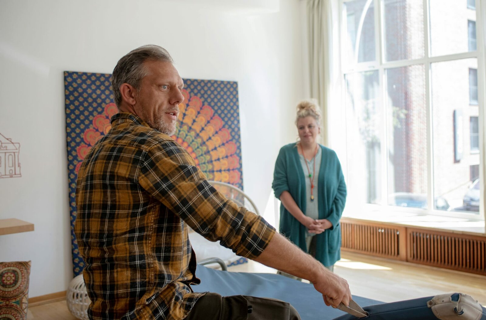 Fremd unter FremdenHausmeister Rainer Kurmann (Lars Nagel, l.) tut alles für "Kuschel-Therapeutin" Dora Zuff (Carolin Spieß, r.) und auch alles, um sie zurückzugewinnen ...Bild: © ARD/Cornelia Klein