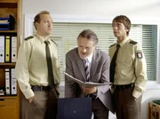 Drah di net umDirk Matthies (Jan Fedder, l.) und Paul Dänning (Jens Münchow, r.) sind skeptisch, was die Ermittlungen des Wiener Kommissars Prechtl angeht.Bild: © ARD/Thorsten Jander
