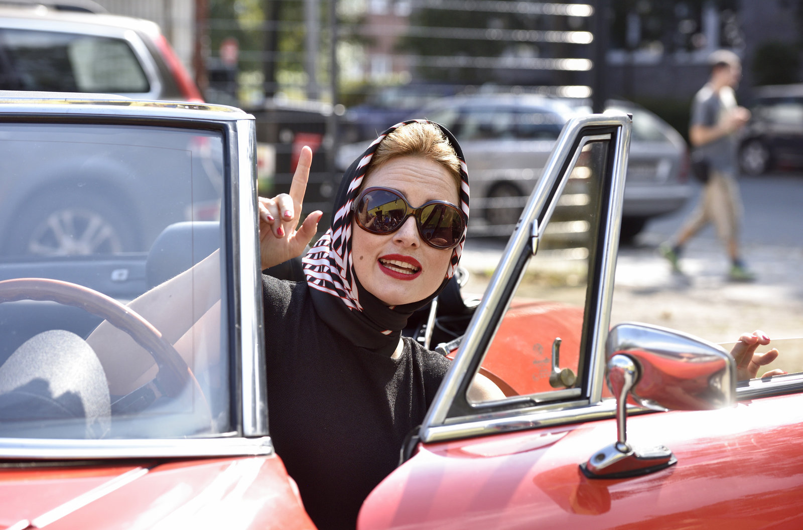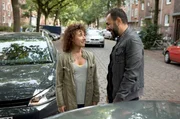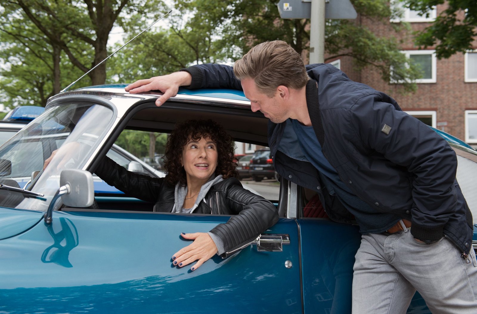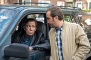 Der Neue mit "T"Harry (Maria Ketikidou, l.) darf einen Oldtimer ihres Freundes zur Probe fahren. Piet Wellbrook (Peter Fieseler, r.) will sie überreden, den Oldtimer für eine Dienstfahrt zu benutzen.Bild: © ARD/Thorsten Jander