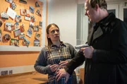 Der kurze Traum vom langen GlückDaniel Schirmer (Sven Fricke, l.) hat genug vom dreisten Auftreten von Helga Künzler (ChrisTine Urspruch, r.).Bild: © ARD/Thorsten Jander