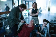 Königs FallGinger „Bitch“ (Claudiu Mark Draghici, l.) und Ceylin „Champ“ Ipek (Roni Zorina, r.) nötigen Onna (Marion Breckwoldt, v.M.), eine Überdosis Chrystal Meth mit Alkohol zu schlucken. Martha König (Victoria Schulz, h.M.) passt auf, dass das gelingt.Bild: © ARD/Thorsten Jander
