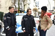 Der Neue mit "T"Harry (Maria Ketikidou, l.) darf einen Oldtimer ihres Freundes zur Probe fahren. Piet Wellbrook (Peter Fieseler, r.) will sie überreden, den Oldtimer für eine Dienstfahrt zu benutzen.Bild: © ARD/Thorsten Jander