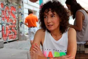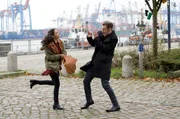 Die Kunst zu kämpfenDamit hatte Rasmus Bauer (Henning Flüsloh, r.) nicht gerechnet: Frau Küppers (Saskia Fischer, l.) hat zufällig beobachtet, wie er eine Politikerin an ihrem Wahlstand mit Eiern beworfen hat.Bild: © ARD/Thorsten Jander