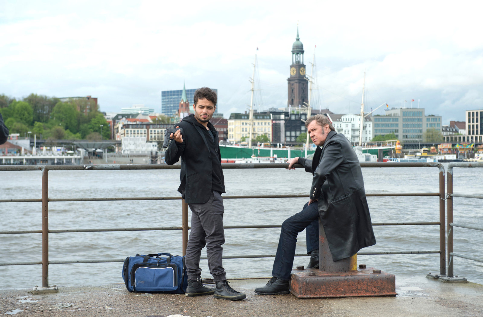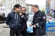NeuanfängeTaschendiebstahl auf dem Kiez: Paul Dänning (Jens Münchow, M.) und Piet Wellbrook (Peter Fieseler, r.) stellen den jugendlichen Flüchtling Rahmin (Skandar Amini, l.).Bild: © ARD/Thorsten Jander