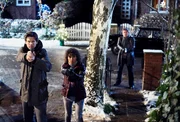 Frohe Weihnachten Dirk Matthies (2)Der Weihnachtsmann Karim Histedt (Horst Krause, r.) führt Dirk Matthies (Jan Fedder, l.) zu Haus seiner Jugendliebe Kristin (Saskia Vester, im HG).Bild: © ARD/Sandra Hoever
