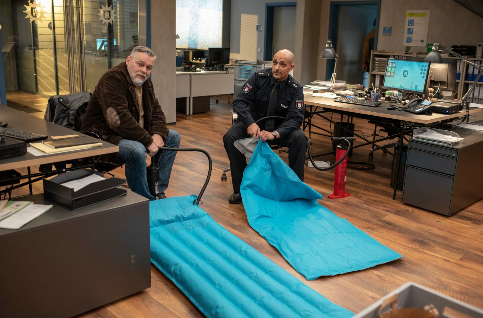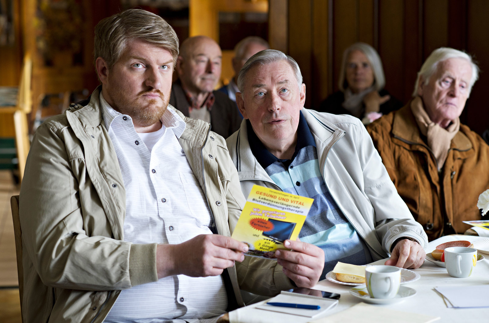 Die Aufsteiger des JahresWiedersehen mit einem alten Bekannten: Bernd Voss (Wilfried Dziallas, M.). Der ehemalige Revierleiter und Hannes Krabbe (Marc Zwinz, l.) nehmen an einer Kaffefahrt teil, um den betrügerischen Verkauf von Pseudo-Medizin zu stoppen.Bild: © ARD/Thorsten Jander