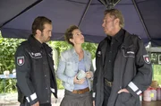 Gras drüberAlexa Wagner (Vera Teltz, M.) versichert Dirk Matthies (Jan Fedder, r.) und ihrem Ex-Freund Paul Dänning (Jens Münchow, l.), dass sie seit Jahren clean ist.Bild: © ARD/Thorsten Jander