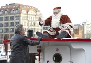 Frohe Weihnachten Dirk Matthies (1)Überraschung für Dirk Matthies (Jan Fedder, l.): dem erklärten Gegner aller Weihnachtsduselei fällt am 24. Dezember der ziemlich betrunkene Weihnachtsmann Karim Histedt (Horst Krause, r.) auf das Deck seines Wohnschiffes Repsold.Bild: © NDR/ARD/Sandra Hoever
