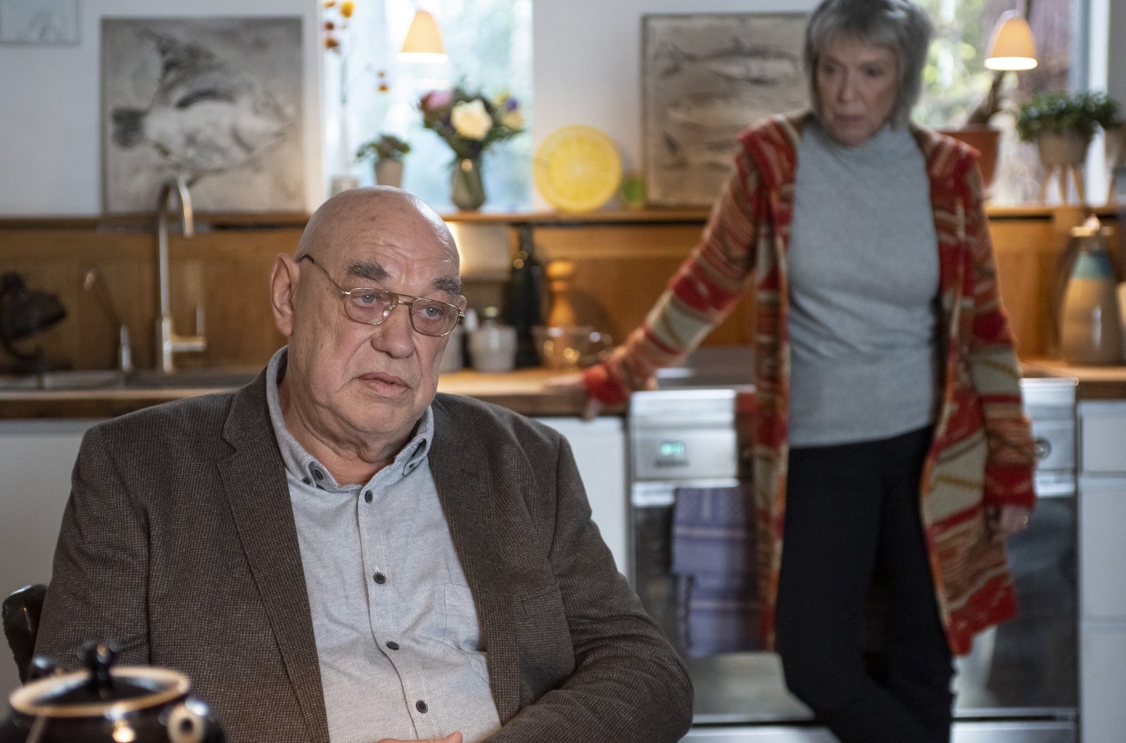 Jagd auf Selay50 Uhr im Ersten. Dirk (Jan Fedder, r.) hält Harry (Maria Ketikidou, l.) eine Standpauke.Bild: © ARD/Thorsten Jander