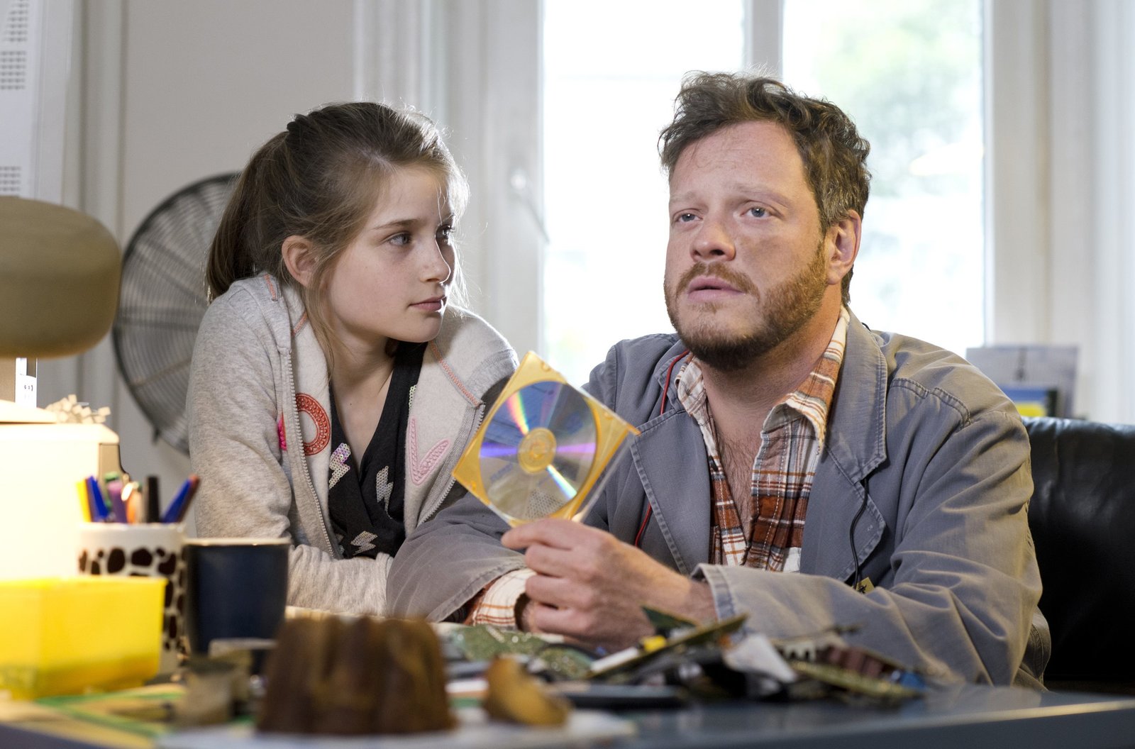 Dirks SorgenkindDie elfjährige Lena (Marleen Quentin, l.) taucht bei Momme Mommsen (Roland Riebling, r.), einem von Dirks Sorgenkindern, mit einer Daten-CD auf.Bild: © ARD/Thorsten Jander