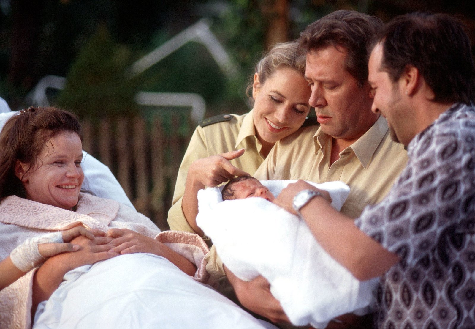 Der große KnallNDR Fernsehen GROßSTADTREVIER, "Der große Knall", am Mittwoch (01.05.13) um 21:45 Uhr. Geburt im Schrebergarten: Petra Clausen (Katrin Politt) hat mit Hilfe von Anna (Dorothea Schenck), Dirk (Jan Fedder) und Freund Micki (Marek Erhardt) (v.l.n.r.) ein gesundes Baby zur Welt gebracht.Bild: © NDR/ARD/Thorsten Jander