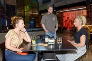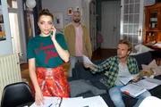 Gerners Geschäftsgespräch mit Rosa läuft zunächst gutMiriam (Sara Fuchs) spielt ihren Albtraum vor Jonas (Felix van Deventer, r.) und Luis (Marc Weinmann) herunter.Bild: © RTL / Rolf Baumgartner