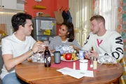 Maren beschließt, dass sie räumlich einen Neuanfang starten willPaul (Niklas Osterloh, l.) und Emily (Anne Menden) haben den Verdacht, dass Nihat (Timur Ülker) ihnen etwas verschweigt.Bild: © RTL Passion