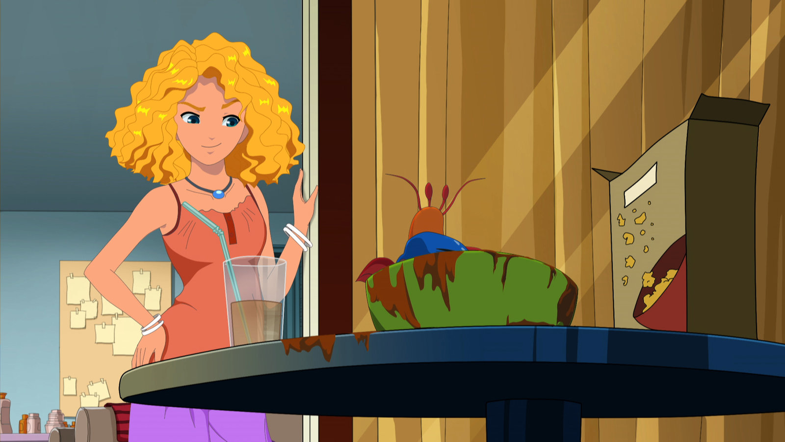 Drei lange TageEmma staunt nicht schlecht. Bernie ist bei dem Versuch, ihr etwas mitzuteilen, im Schokopudding gelandet.Bild: © ZDF und Les Cartooneurs Associés