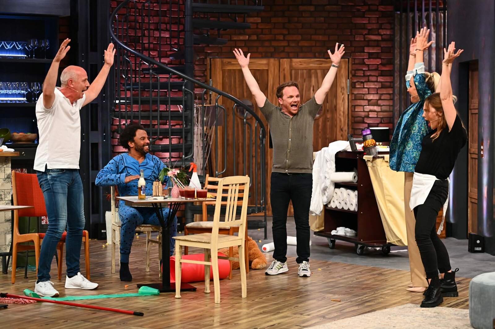 Folge 2(v.l.n.r.) Simon Pearce; Kathrin Osterode; Pierre M. Krause; Ralf Schmitz; Janine Kunze; Jenke von WilmsdorffBild: © Sat.1