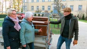 O'zapft is!Oli muss sich etwas für den alten Stoff überlegen, den Dagmar und Sybille ihm mitgebracht haben.Bild: © WDR/Encanto Film- und Fernsehproduktions GmbH