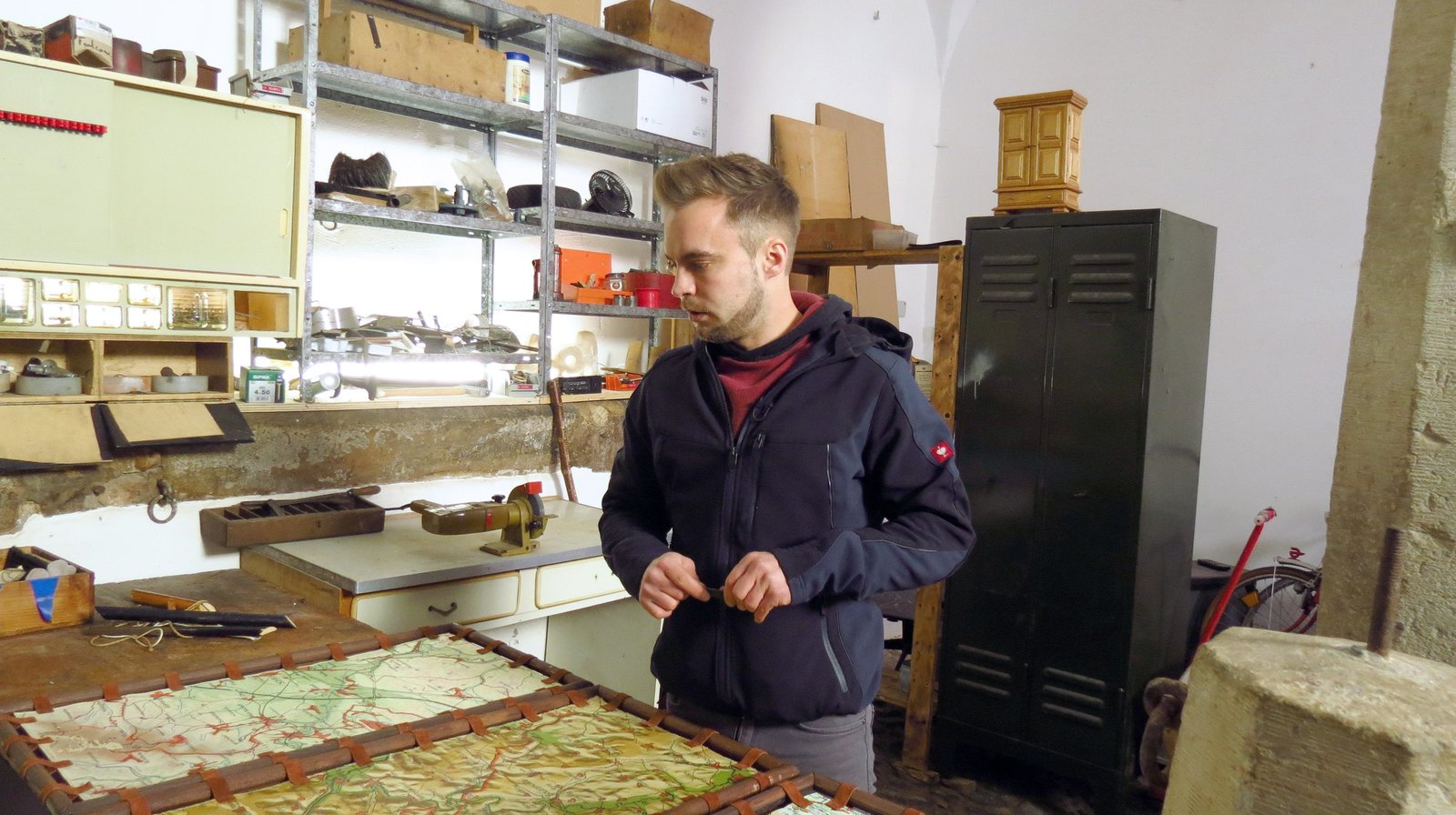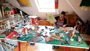 Ein Paravent für KatzenUpcycling Experte Josha Eggert nimmt den letzten Schliff an seinem heutigen Objekt vor.Bild: © WDR/Encanto Film- und Fernsehproduktions GmbH
