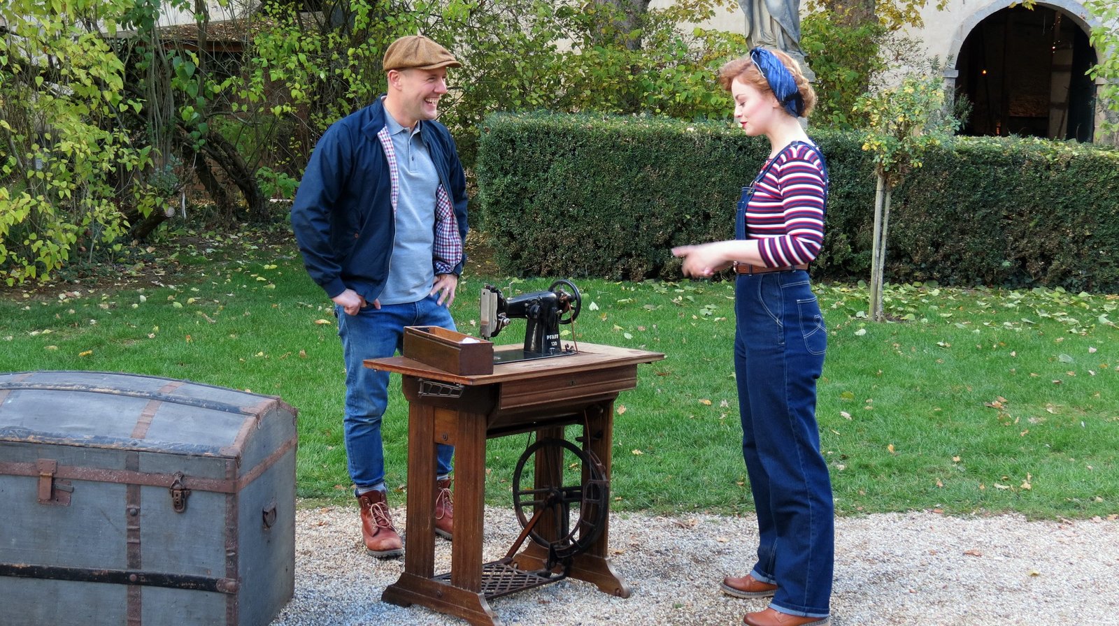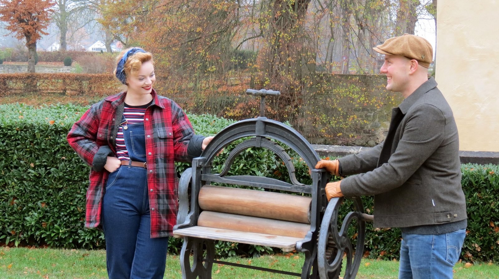 Von der Wäschemangel zum SchreibtischVictoria Beyer und Oli P. sind begeistert von der Wäschemangel.Bild: © WDR/Encanto Film- und Fernsehproduktions GmbH