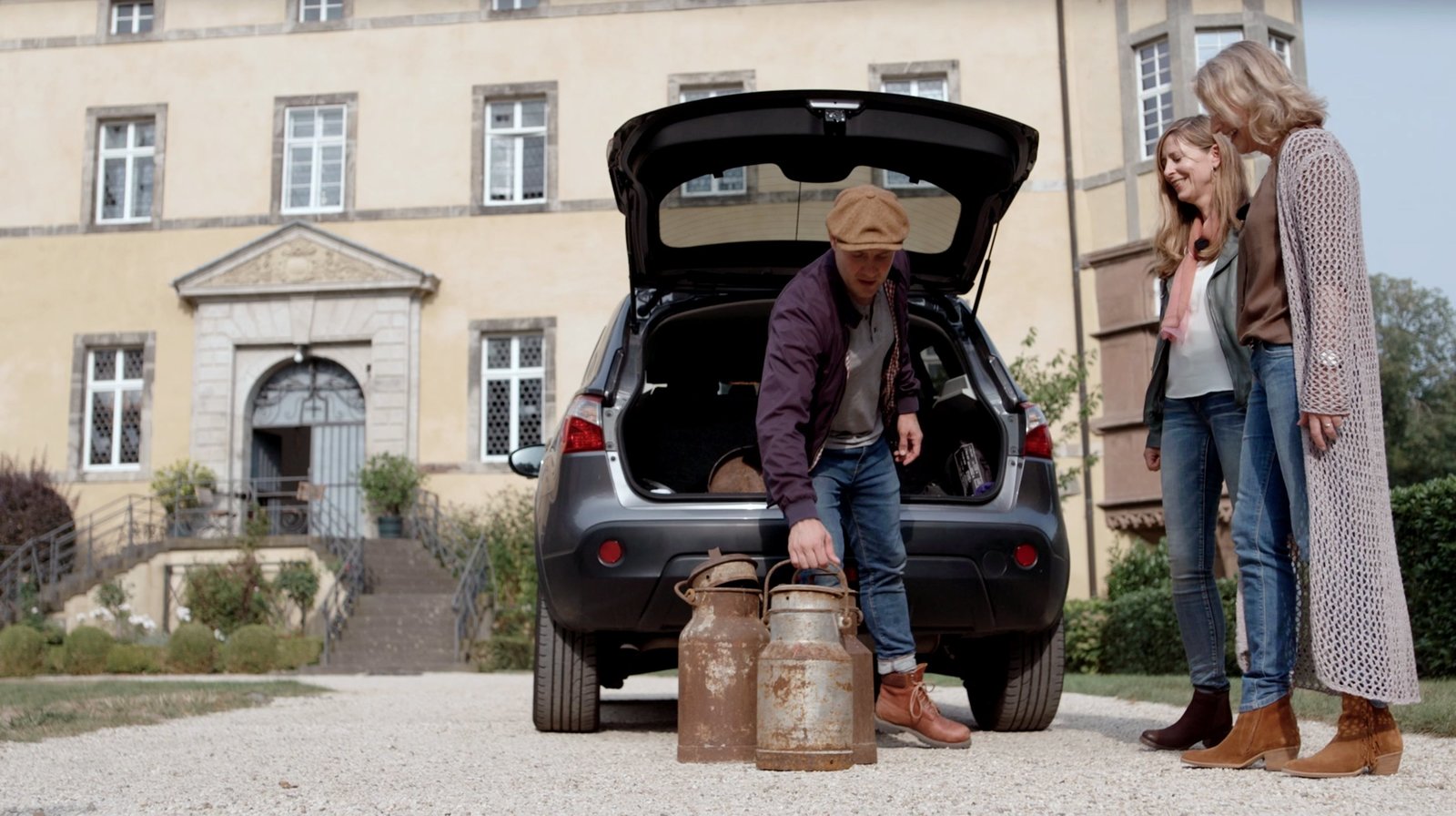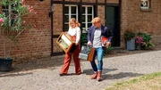 Die Milch macht'sOli P. begrüßt Elfi Falkenstein und ihre beste Freundin Jutta Schmidt, die einen alten Ofen und ein paar zerbeulte Milchkannen mitgebracht haben.Bild: © WDR/Encanto Film- und Fernsehproduktions GmbH