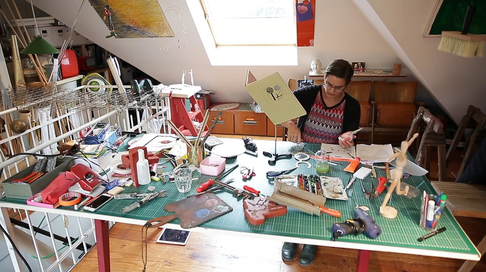 Die Flöte im KofferExpertin Angelika Vienken arbeitet an der Buchinstallation, die aus alten Märchenbüchern entstehen soll.Bild: © WDR/Encanto Film- und Fernsehproduktions GmbH
