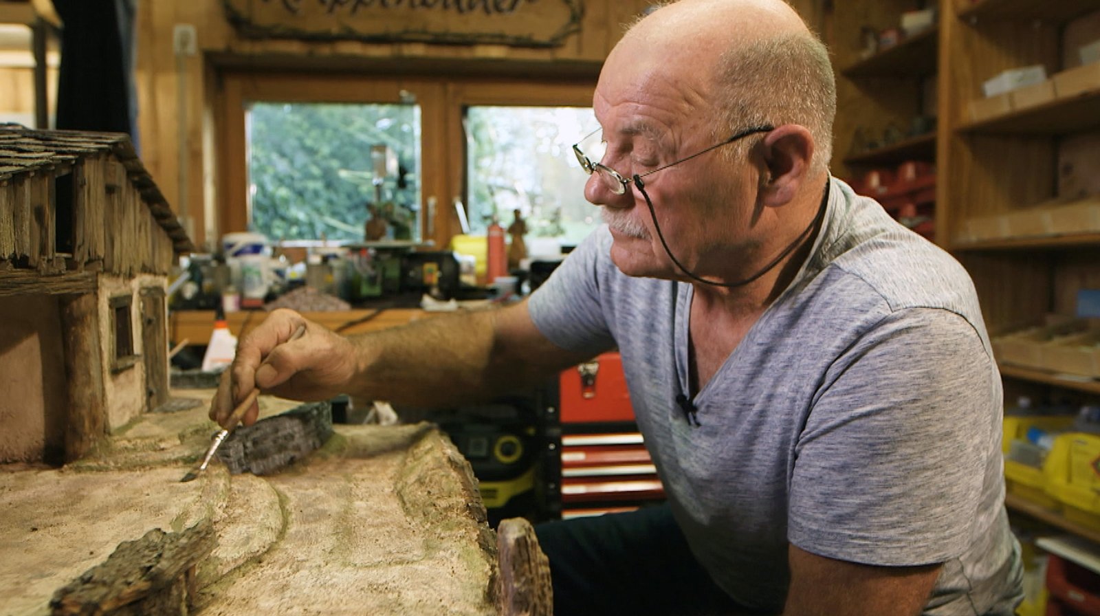 Wie man eine Krippe bautSeit 30 Jahren ist Lutz Kuhl aus dem pfälzischen Annweiler leidenschaftlicher Krippenbauer. Hier beim Gestalten einer Krippen-Landschaft.Bild: © SWR