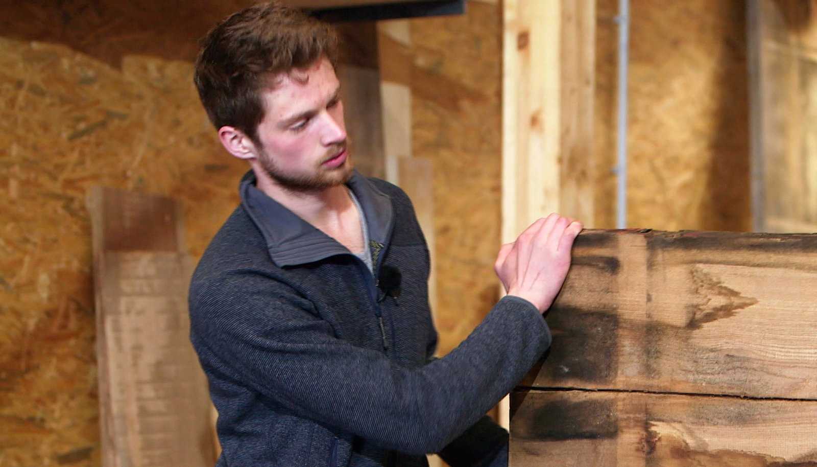 Wie man einen Tisch bautLeander Sommer, Geselle im Betrieb seines Vaters, im Holzlager.Bild: © ZDF und SWR