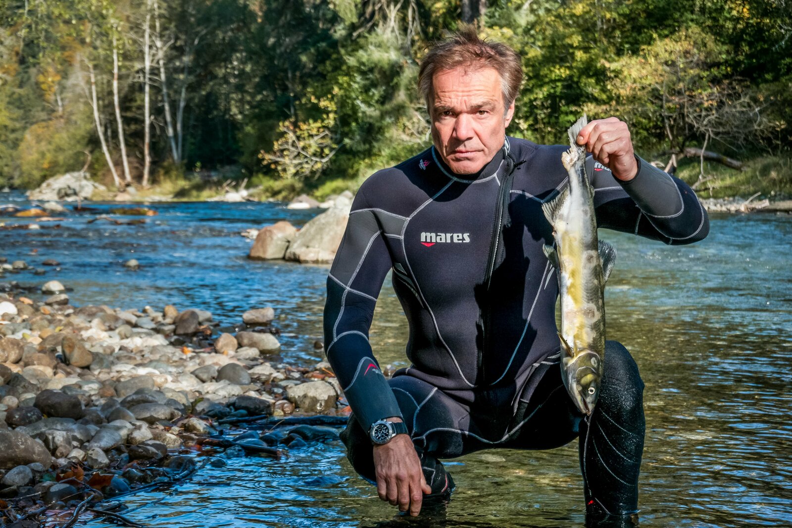... den LachsAm Campbell River auf Vancouver Island erreichen immer weniger Lachse ihre Heimatgebiete. Immer mehr Buckellachse sterben hier bevor sie ihre Laichgründe erreicht haben.Bild: © ZDF und Andre Becker.