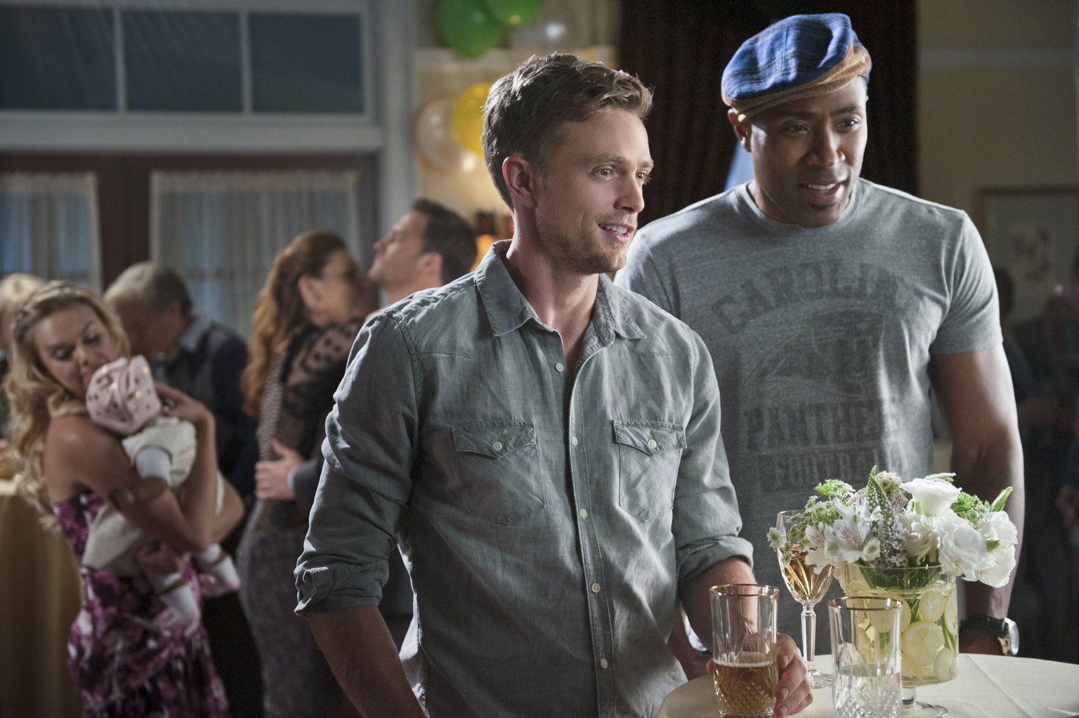 Die ÜberraschungspartyWährend Lavon (Cress Williams, r.) glaubt endlich am Ziel seiner Träume z sein, suchen Wade (Wilson Bethel, vorne l.) und Zoe nach einem alten Erbstück, das sie ihrem Kind vermachen können ...Bild: © 2014 Warner Brothers Lizenzbild frei