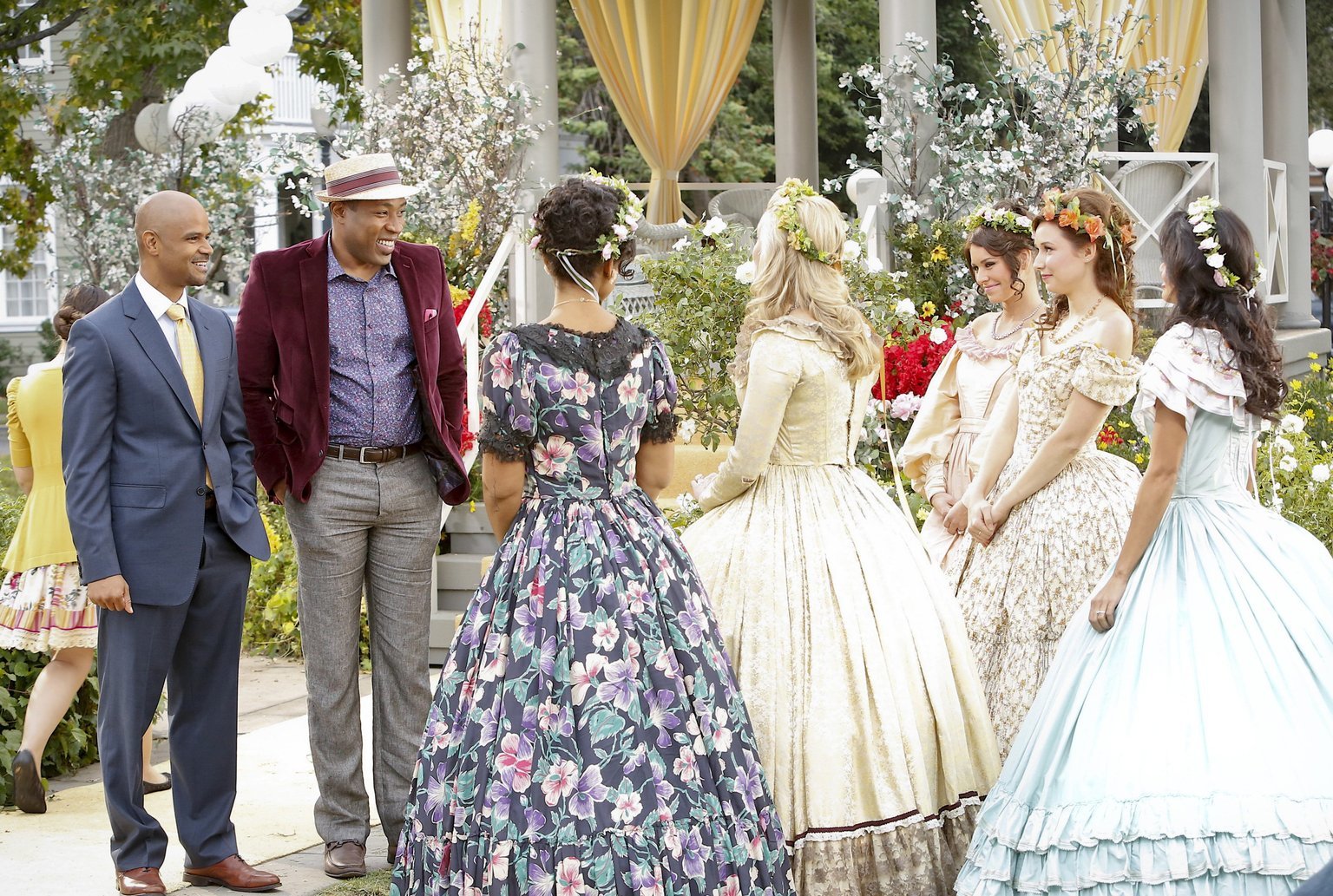 Die allerletzte ChanceMit Hilfe der Belles versucht Lavon (Cress Williams, 2.v.l.) den Gouverneur Alex Byrd (Dondre Whitfield, l.), von der Einzigartigkeit Bluebells zu überzeugen ...Bild: © Warner Brothers Lizenzbild frei