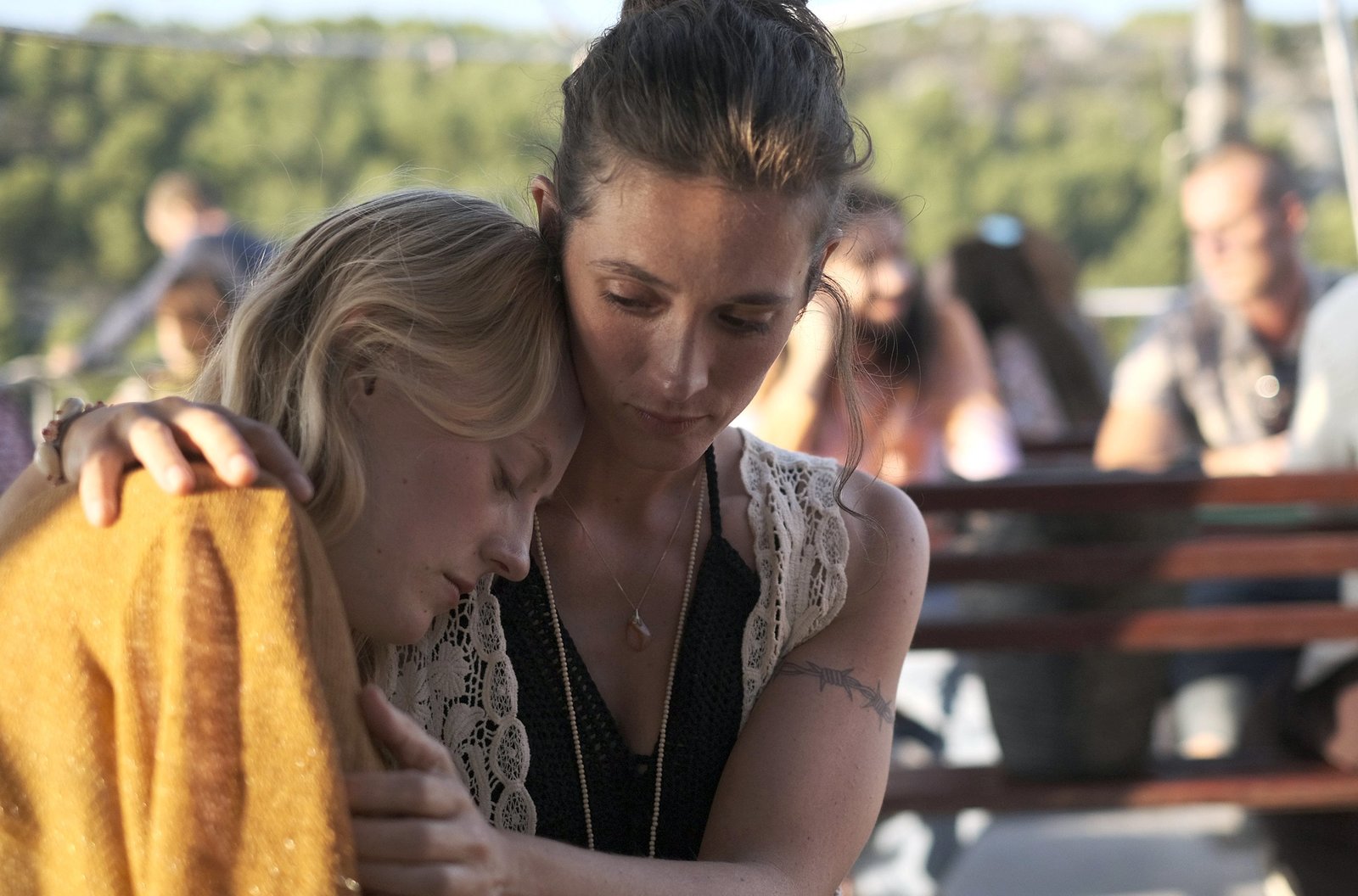 Gefährliche ErinnerungEvelyn (Caroline Hellwig) findet Trost bei Amanda (Friederike Becht, r.).Bild: © ARD Degeto/Domagoj Kunic