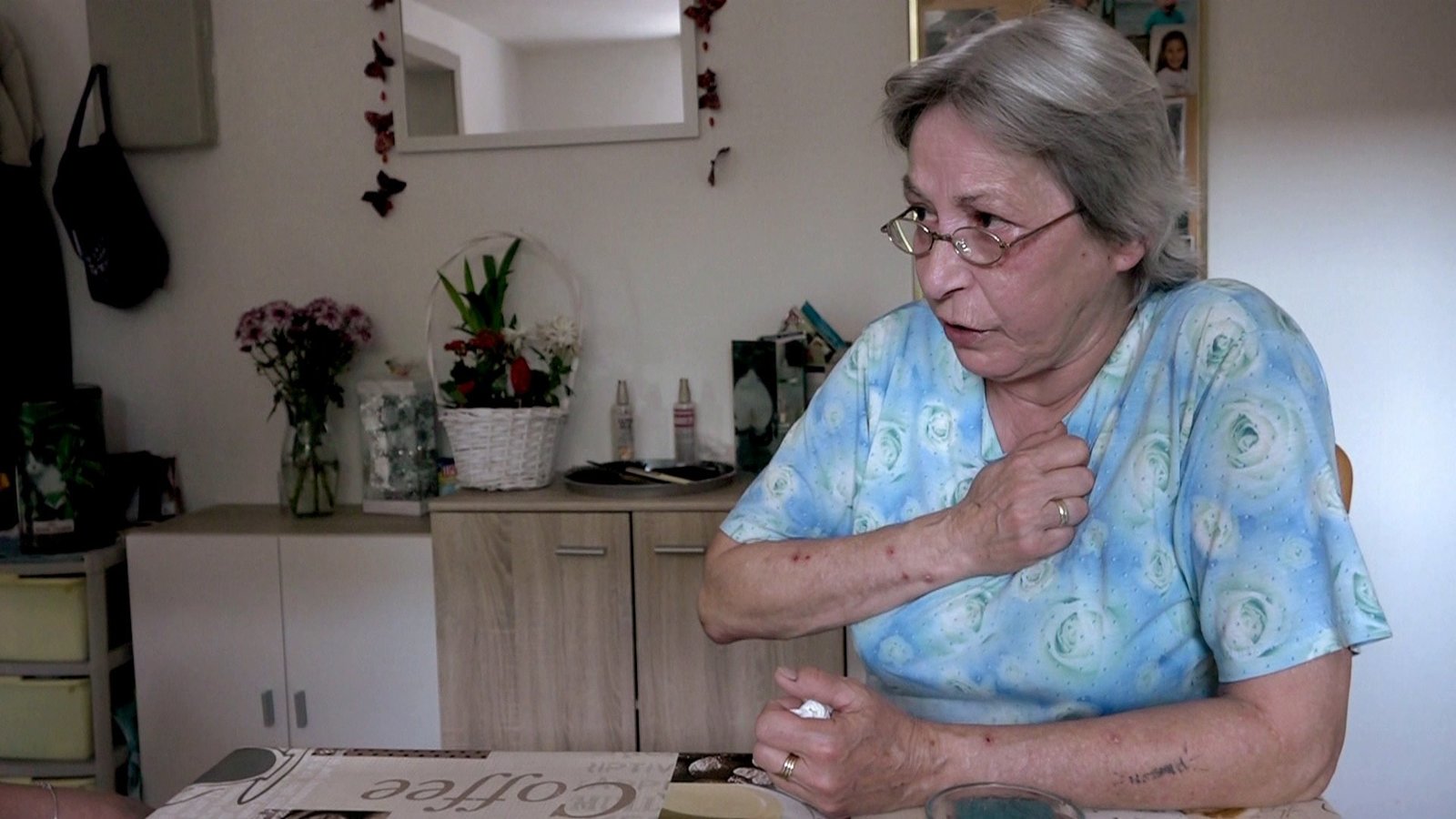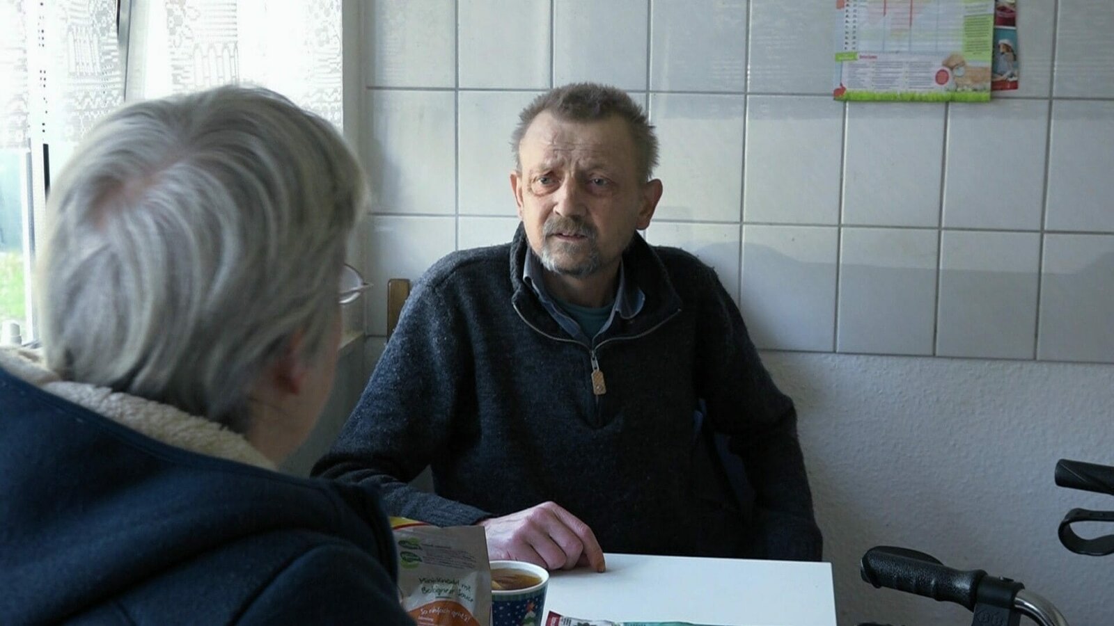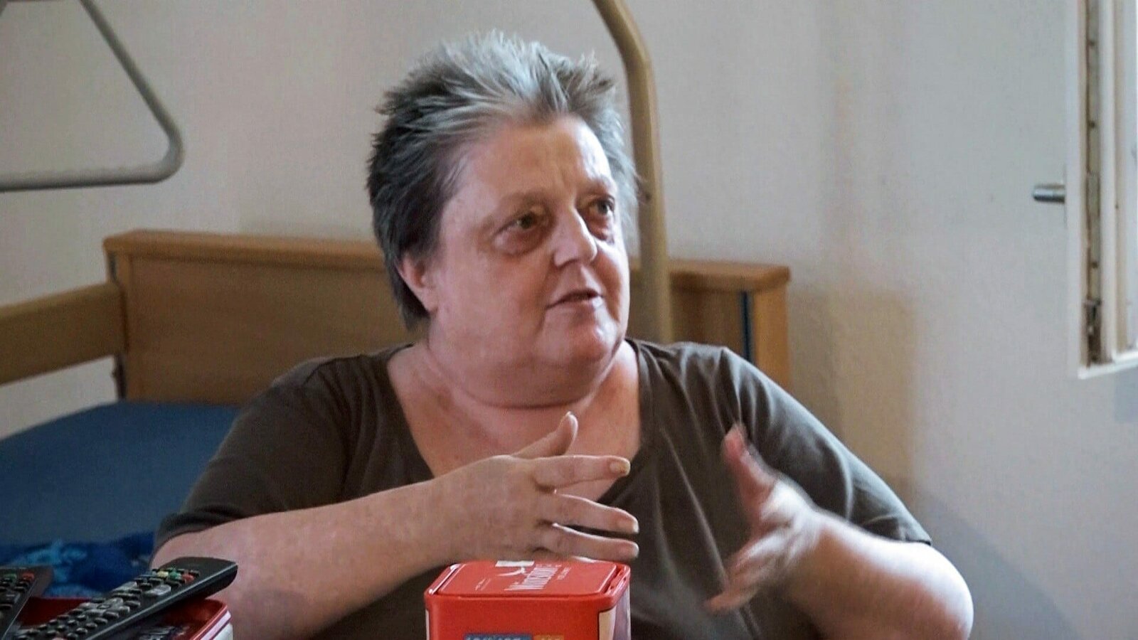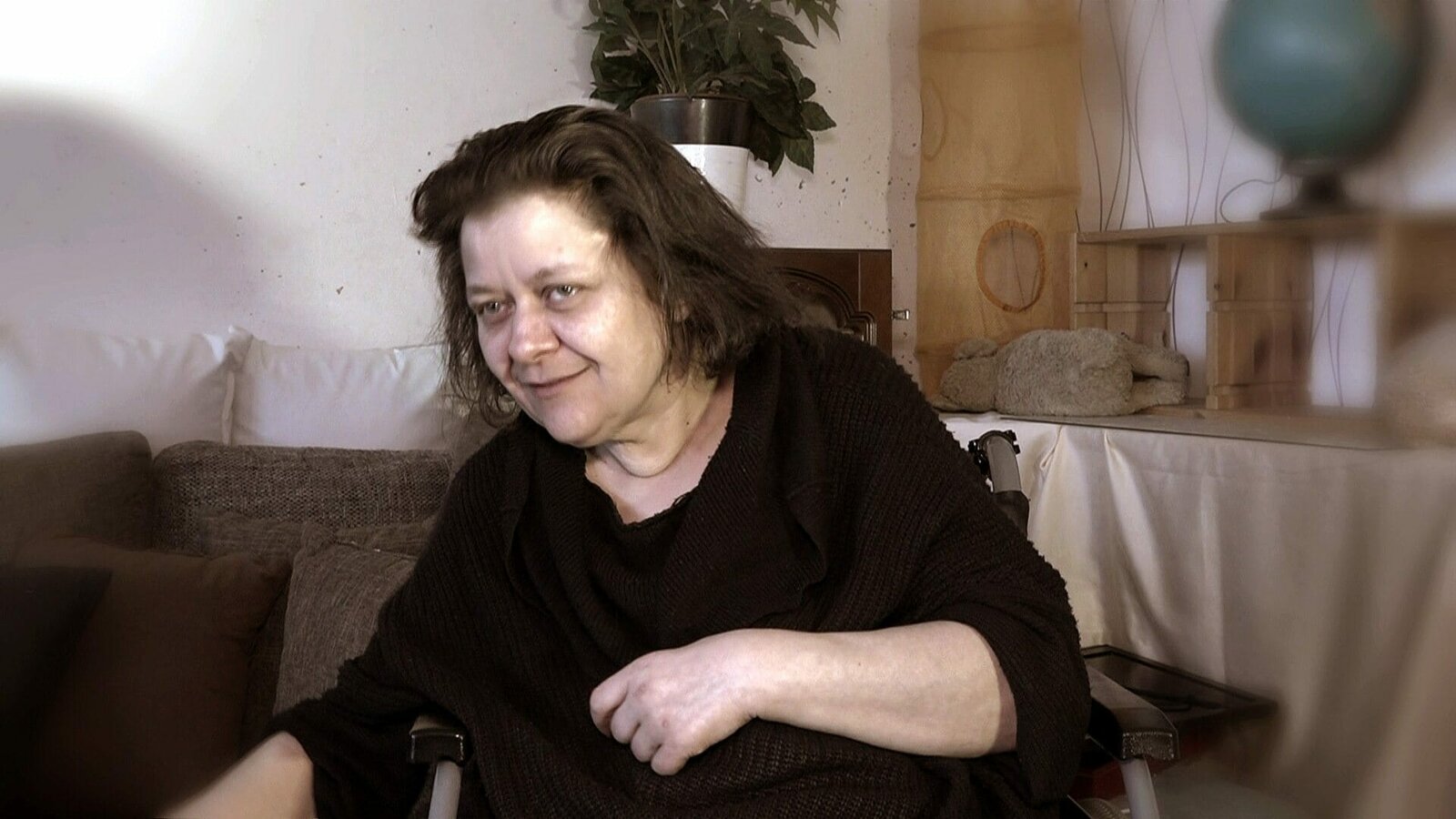 Gudrun hat durch eine Blutvergiftung ihren rechten Fuß verloren und ist auf einen Rollstuhl angewiesen; einen Großteil ihrer Zeit verbringt sie in den eigenen vier Wänden.