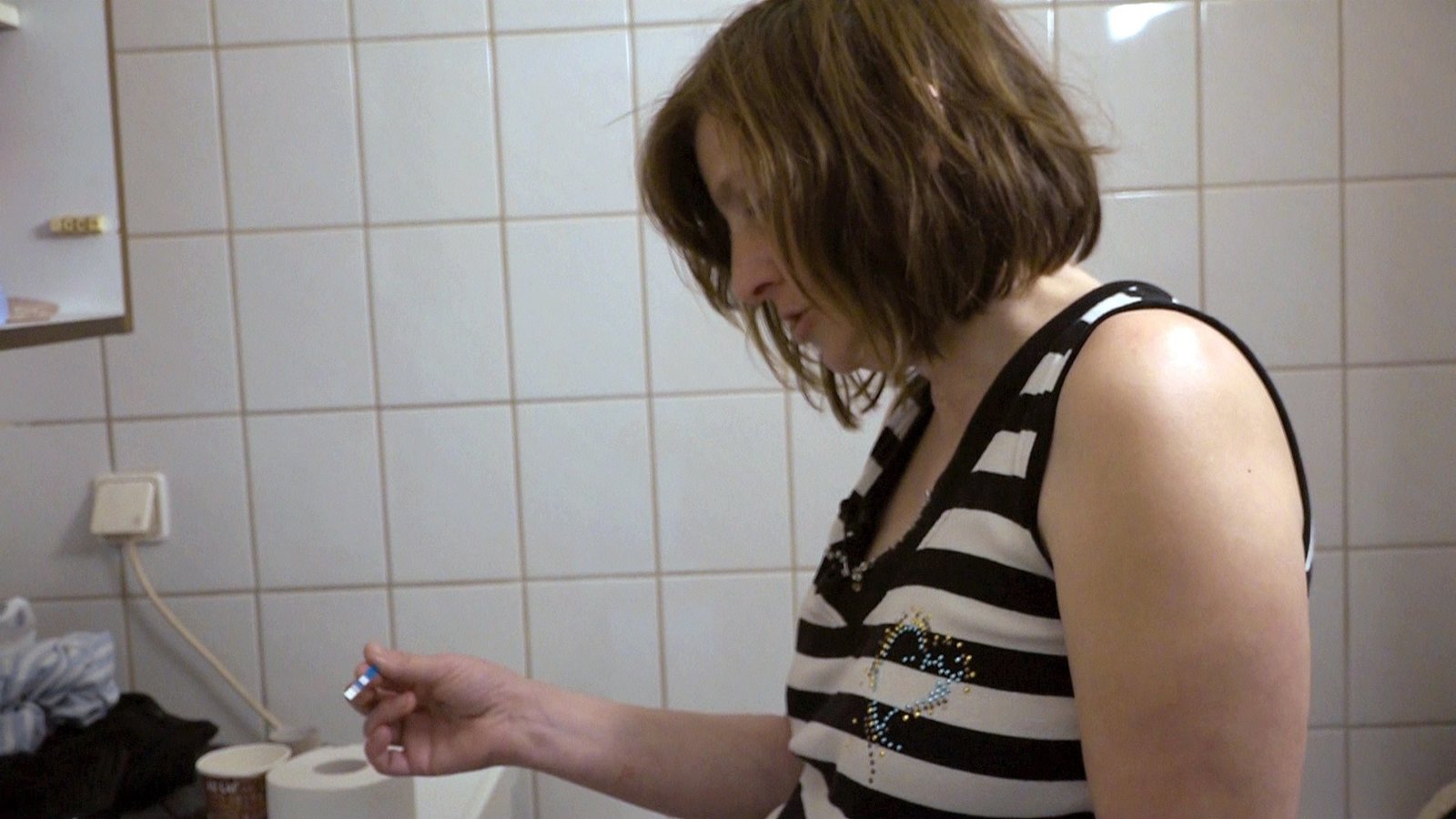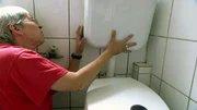 Rentnerin Dagmar will einen neuen Spülkasten anbringen..