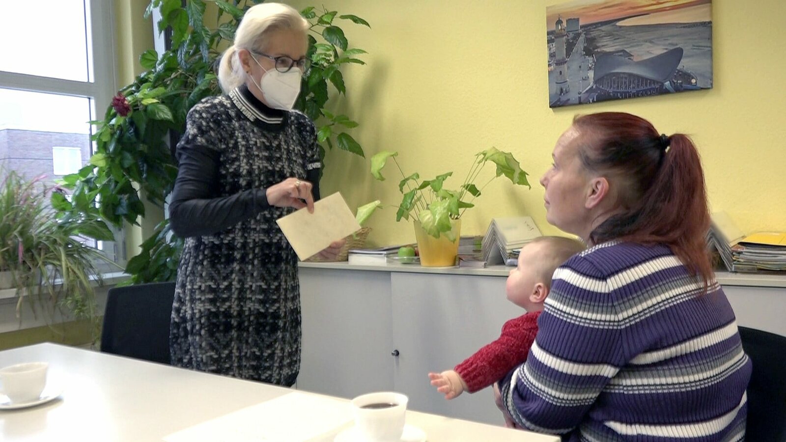 JubiläumFür Michaela (42, re.) steht ein aufregendes Erlebnis an, denn der Bundespräsident übernimmt die Ehrenpatenschaft für ihre jüngste Tochter Layla Kay. Eine Vertreterin des Staatsoberhaupts überreicht die Urkunde an Mutter und Baby.Bild: © RTL Zwei