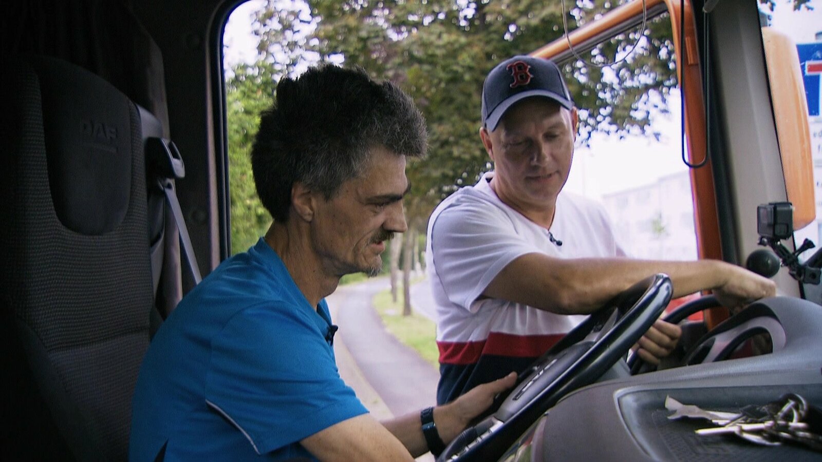 ÜberraschungenDieters Freund Michael (re.) möchte dem LKW-Fan nun seinen größten Wunsch erfüllen.Bild: © RTL Zwei