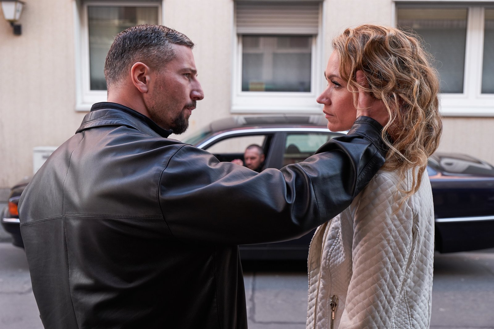 Carneval - Der Clown bringt den TodDer Gangster Viktor Buslenko (Murathan Muslu) weiß nicht, ob er seiner Geliebten (Lisa Maria Potthoff) trauen kann.Bild: © Das Erste