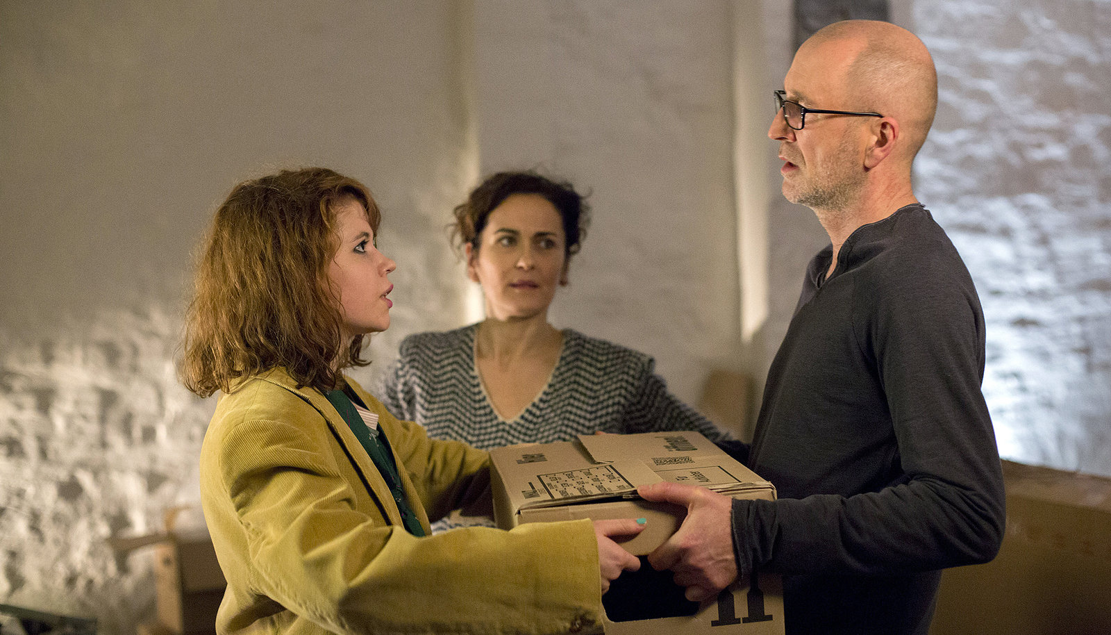 BrandmalJan Fabels (Peter Lohmeyer) Tochter Gabi (Luise Aschenbrenner, li.) zieht vorübergehend bei ihm ein. Seine Partnerin Susanne (Marie-Lou Sellem) bemerkt das gespannte Verhältnis zwischen Vater und Tochter.Bild: © NDR/Degeto/Tivoli Film/Georges Pauly