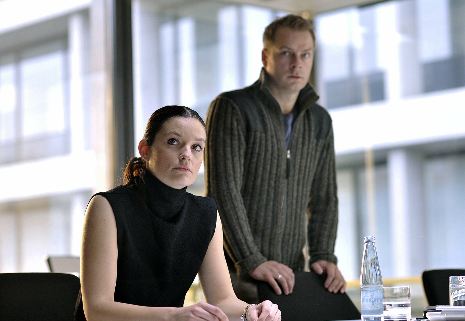 BrandmalKriminalkommissar Jan Fabel (Peter Lohmeyer, re.) beurlaubt seine Kollegin Maria (Lisa Maria Potthoff) vorübergehend vom Dienst.Bild: © ZDF und ARD Degeto/Tivoli Film/Georges Pauly
