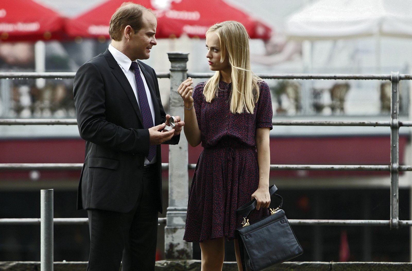 Der PartnerNDR Fernsehen HEITER BIS TÖDLICH: HAUPTSTADTREVIER, "Der Partner", am Samstag (04.04.15) um 16:45 Uhr. Johannes Sonntag (Matthias Klimsa, l.) gibt Julia Klug (Friederike Kempter, r.) die SIM-Karte von Ron Schneiders Prepaid-Handy. Hat er den Einsatz gegen die Produktfälscherbande verraten?Bild: © NDR/ARD/Daniela Incoronato