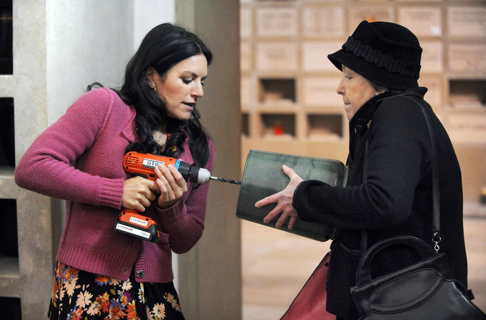 Bretter, die die Welt bedeutenARD/HEITER BIS TÖDLICH - MÜNCHEN 7, Vorabendserie mit 16 neuen Folgen, Folge 20 "Asche", am Mittwoch (29.10.14) um 18.50 Uhr im Ersten. Elfi (Christine Neubauer, l.) und Lisa (Sarah Camp, r.) klauen Traudls Asche.Bild: © Barbara Bauriedl