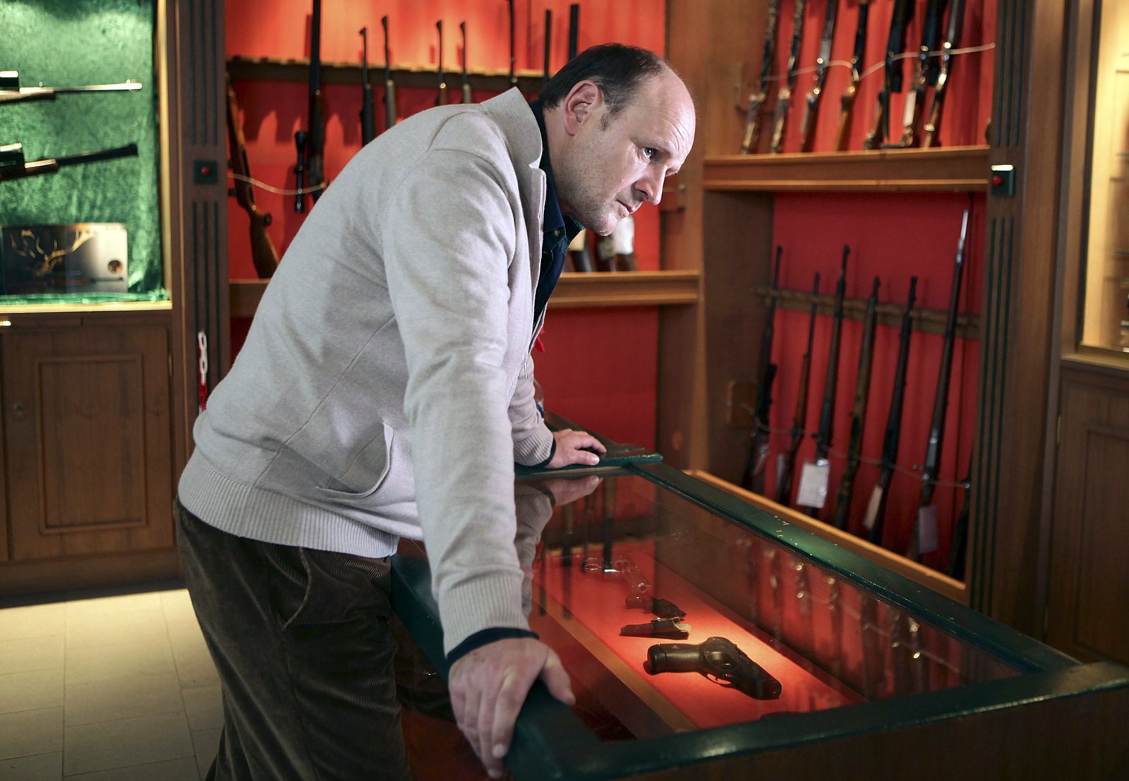 JagdrevierFerdinand Brüneck (Oliver Stokowski) leitet zusammen mit seiner Ex-Frau ein Geschäft für Jagdmoden und Jagdwaffen.Bild: © MDR/Daniela Incoronato