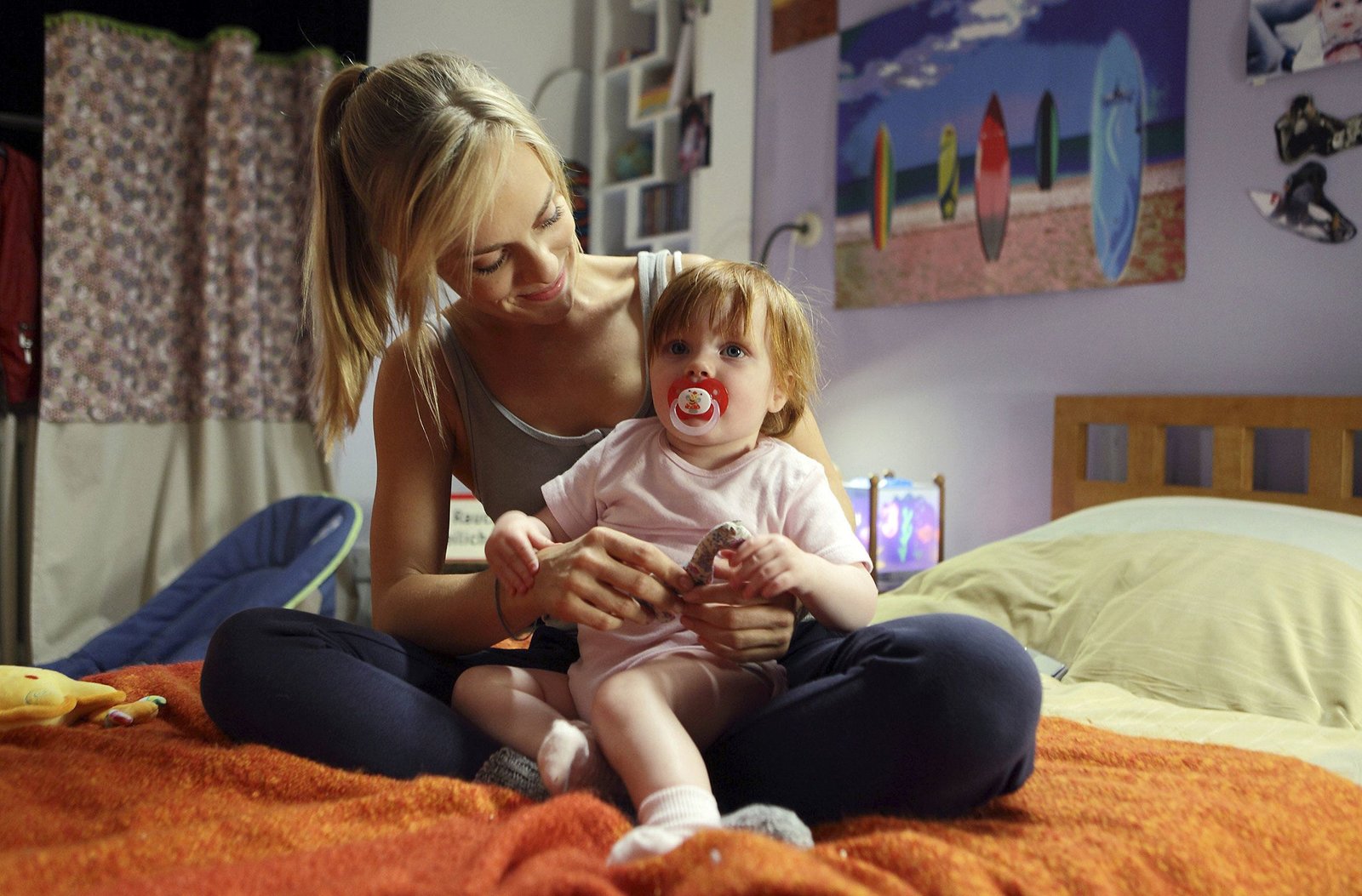 Der VormundARD/HEITER BIS TÖDLICH - HAUPTSTADTREVIER, neue Krimiserie (16 Folgen), Folge 6 "Der Vormund", am Dienstag (08.01.2013) um 18.50 Uhr im Ersten. Nach einem langen Arbeitstag widmet sich Julia Klug (Friederike Kempter, l.) Baby Ellie (Johanna Gaudlitz, r.).Bild: © ARD/Daniela Incoronato