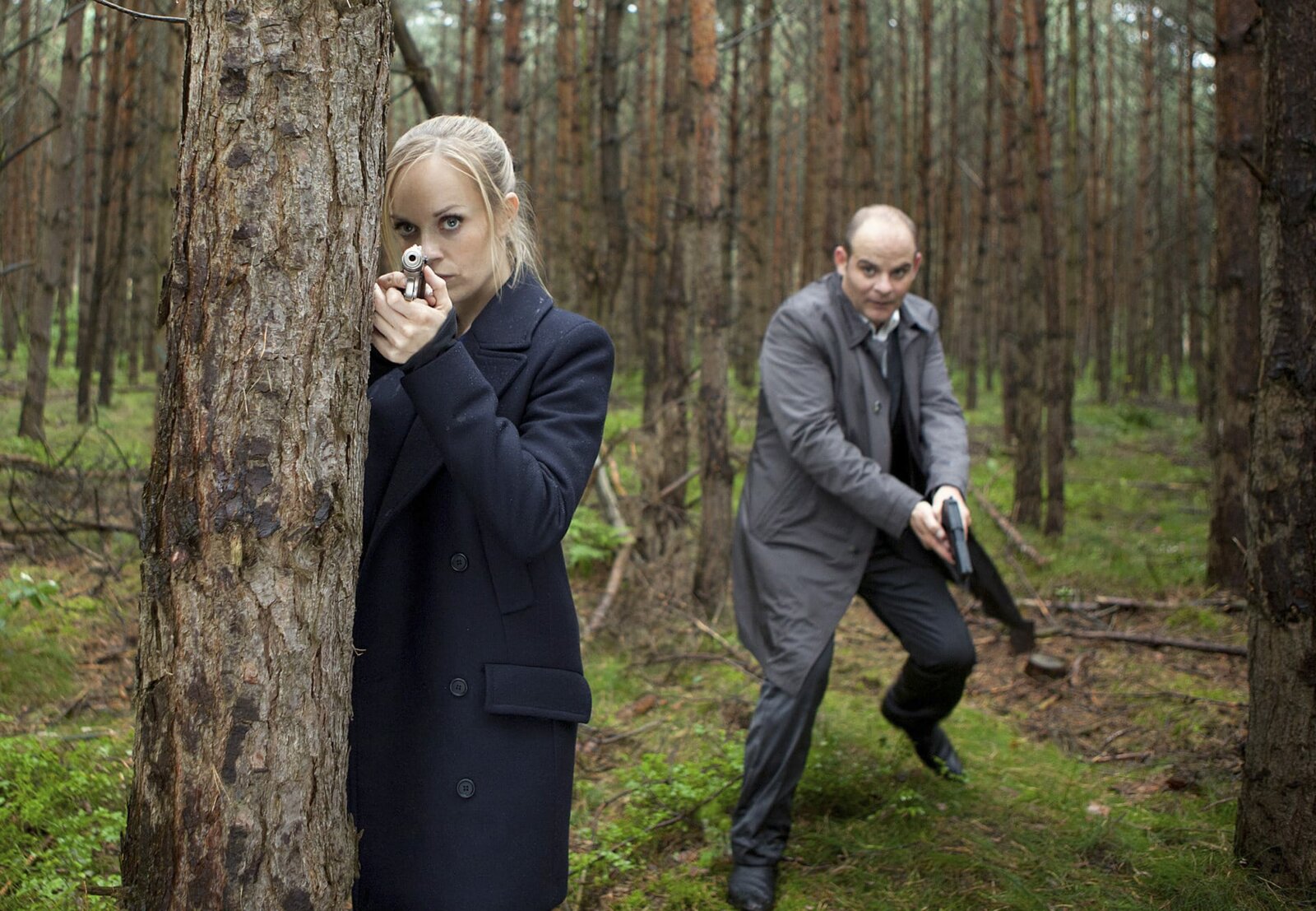 JagdrevierJulia Klug (Friederike Kempter) und Johannes Sonntag (Matthias Klimsa) nähern sich vorsichtig einer gefährlichen Situation im Stadtwald.Bild: © ARD/Daniela Incoronato
