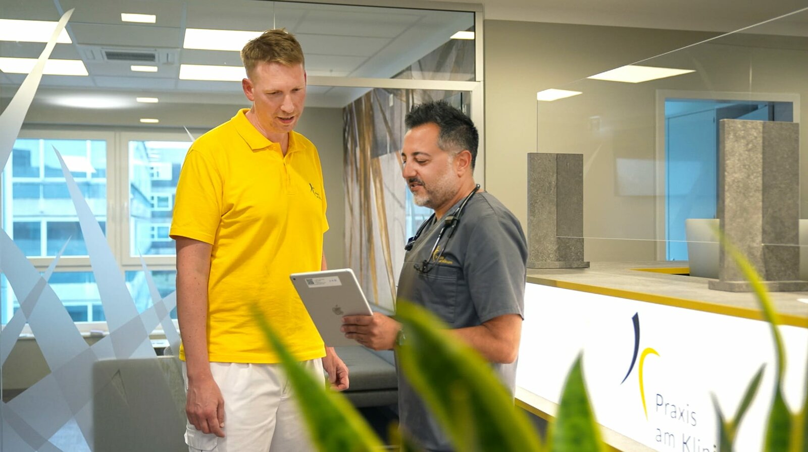 Das ungleiche Duo und die NotärztinDr. Fokko Steinbeißer (l) und Sascha Haschemi gründeten 2020 gemeinsam ihre Hausarztpraxis in Velbert.Bild: © WDR/Fandango Film und TV Produktions GmbH/Paul Bogdanski