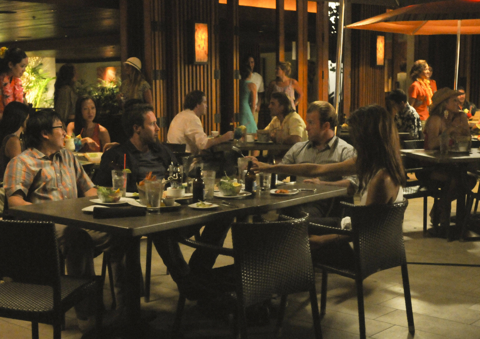 Pictured L to R: Alex O'Loughlin as Steve McGarrett and Taylor Wily as Kamekona.