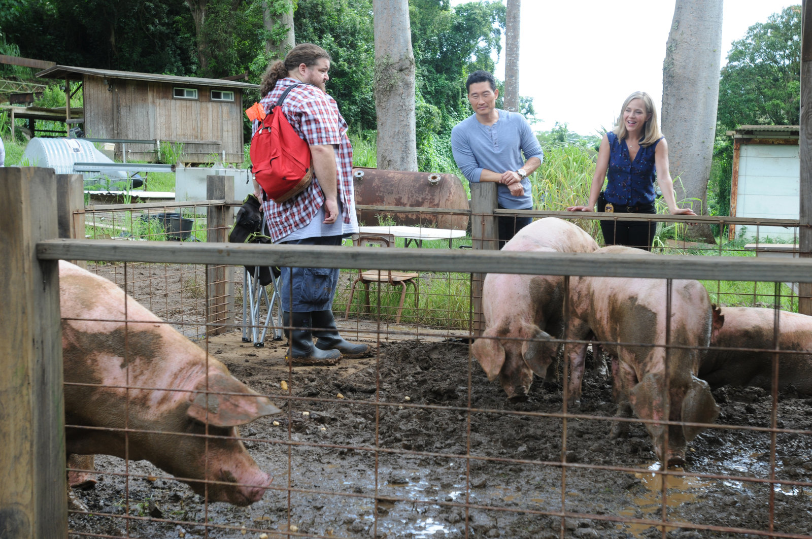 (v.l.n.r.) Jerry Ortega (Jorge Garcia), Chin Ho Kelly (Daniel Dae Kim) und Inspector Abby Dunn (Julie Benz)