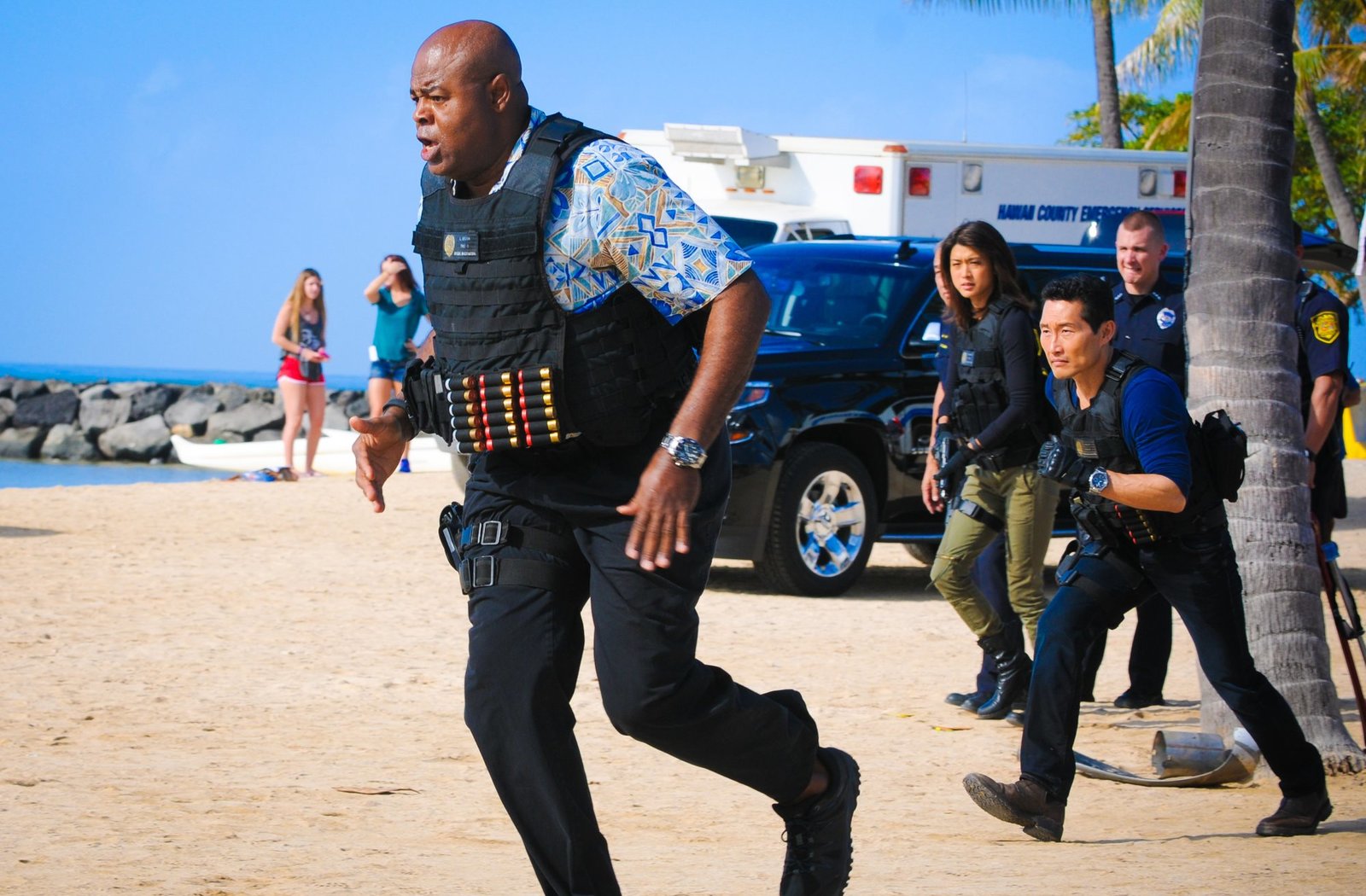 (v.l.n.r.) Captain Lou Grover (Chi McBride), Inspector Abby Dunn (Julie Benz) und Chin Ho Kelly (Daniel Dae Kim)